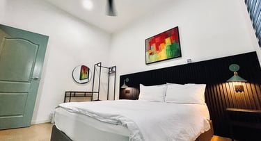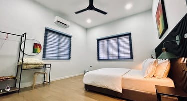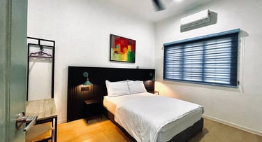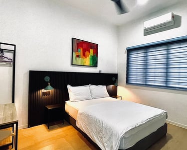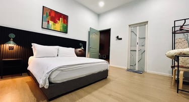 The bedrooms at D'Surya Villa are comfortable and spacious, suitable for accommodating up to 4 people per room. Equipped with a queen-sized bed, air conditioning, and a private bathroom, it's designed to ensure you get a good night's sleep. The perfect choice for a small family or friends!