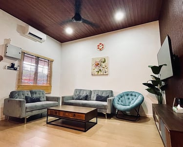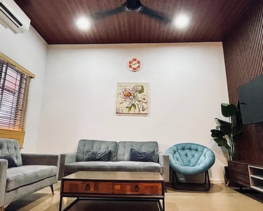 The living room at D'Surya Villa is very spacious and comfortable, suitable for large families or groups who want to relax together. We also provide facilities such as Netflix, WiFi, and various other entertainment to ensure your time here is more enjoyable. This space is designed to create a relaxing atmosphere while you spend quality time with your loved ones.