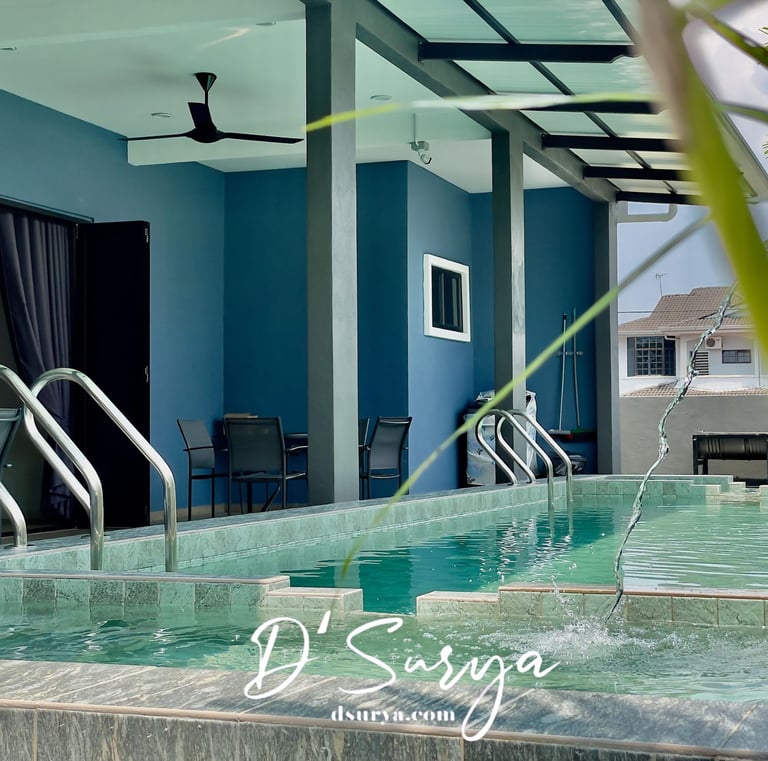 If you're searching for the ultimate getaway in Taiping, D'Surya Villa is your perfect destination, conveniently located just five minutes from downtown. This hidden Villa is designed for families and groups, ensuring all your needs are met. Upon arrival, you'll appreciate the spacious parking area, ideal for larger parties. Step inside to find a cozy living room, complete with Netflix and Wi-Fi, offering a comfortable space to relax after a day of exploring. D'Surya Villa features three large bedrooms, each equipped with queen-sized beds, accommodating up to 12 guests comfortably. With air conditioning in every room and attached bathrooms for convenience, your comfort is our priority. What truly sets us apart is our commitment to providing a memorable experience tailored to your needs, making D'Surya Villa the perfect choice for your stay in Taiping. But what makes us special: our amazing swimming pool!! Accessible directly through large sliding doors